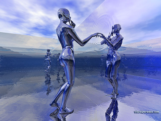 That turns the world midnight blue "Criminy, those aren't the words to that song," I muttered with growing confusion. "I know every word of that recording by heart!" "Who are you?" I asked the image that was now before me, not expecting a reply from a cold glass virtual image. The video looked 99% the same as I'd seen a hundred times before when I'd watched Laura Silvan's music video, the same image I'd digitized into the virtual reality world. That was the problem, it was only 99% the same. "Who are you?" the image giggled in reply. "Beelzebub!" I swore out loud. I swear I didn't expect a reply from the virtual image in front of me and it stunned me. I'm certain I never programmed a response module in the virtual reality software I'd encoded. It must have been some glitch in the operating system. "You're a computer program," I finally thought out loud. "You're something I created with my mind. You are therefore a computerized virtual dream." A perfect tear formed in the images' eye, like a crystal drop of dew. I watched the tear run down the cheek of the virtual woman in front of me, fall and then splinter on the hyper reality surface on which we stood. Her crystallized tear splintered infinitely into the distance. "I am not a computer dream," the image said. "I am Ell." |